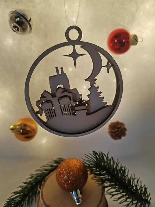Boule de Noël en Bois - Cadeaux sous la Lune